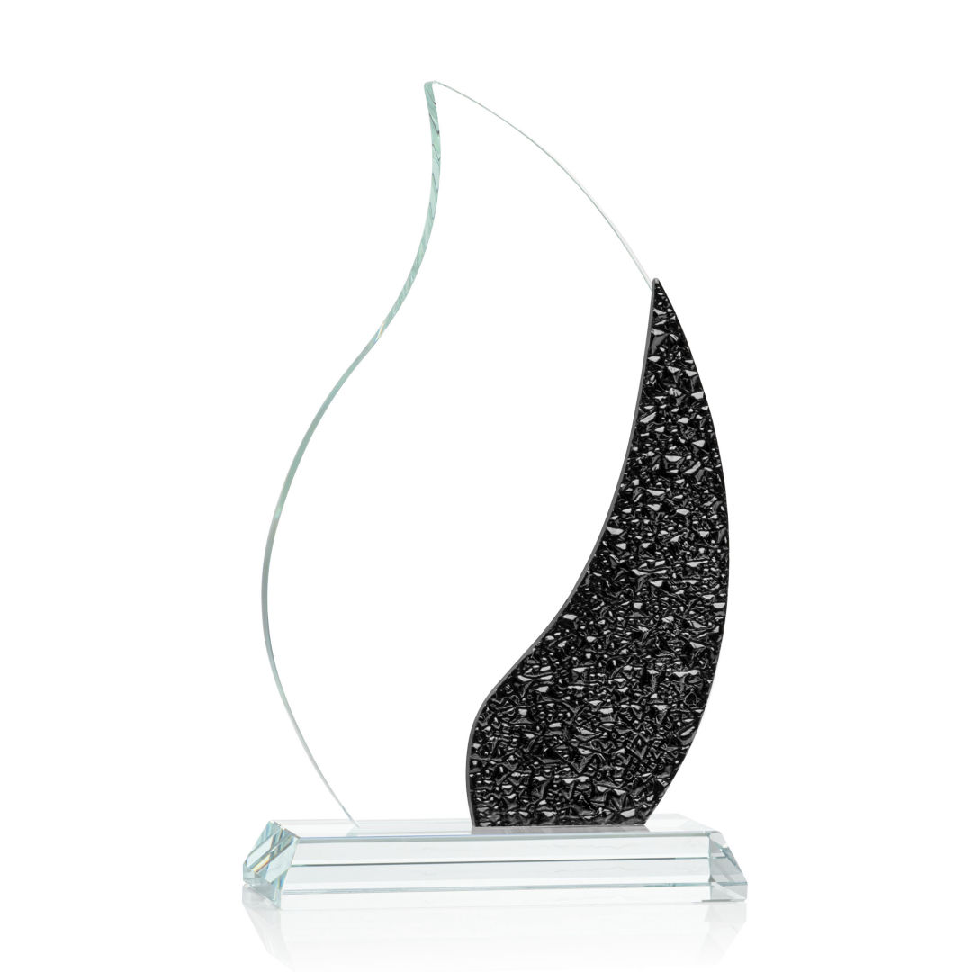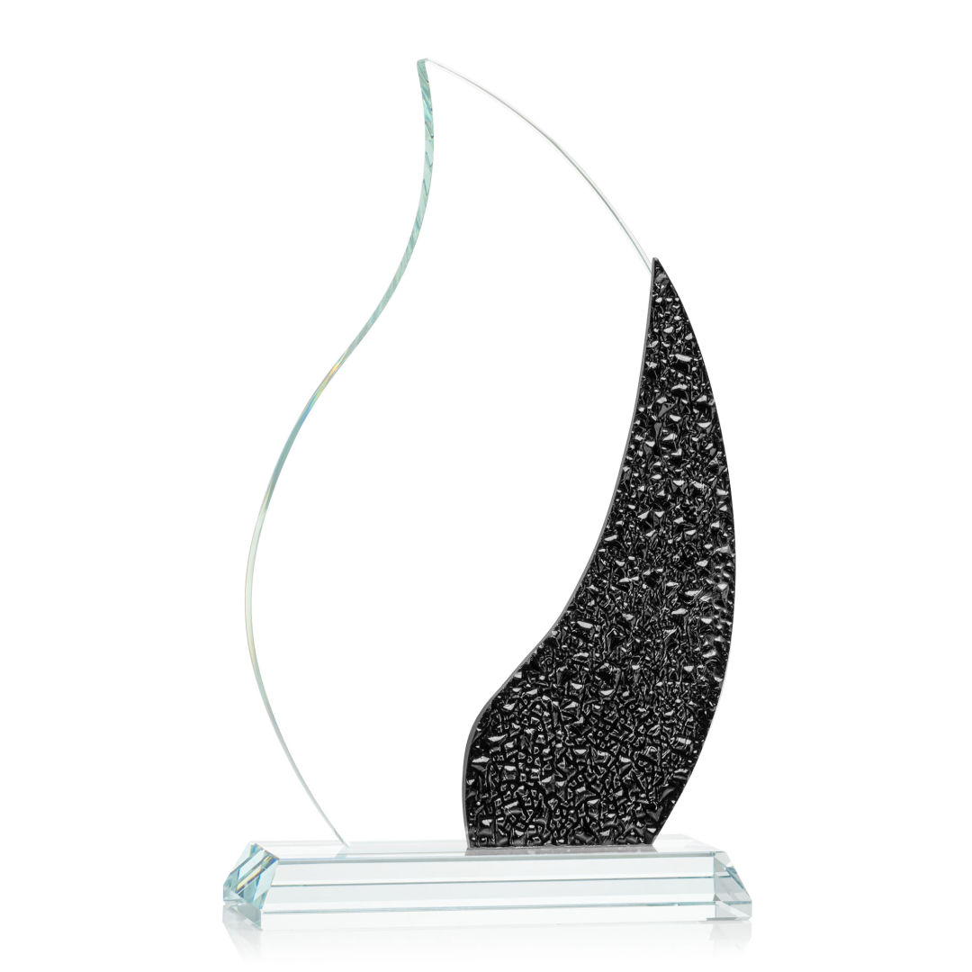 The Oakley Flame VividPrint™ Award is a radiant masterpiece that stands out amongst the crowd! The main body of the award takes the form of a dynamic flame, meticulously sculpted from Starfire Crystal. What sets this award apart is the innovative inclusion of a stained glass-like texture at the side of the award that follows the curved flame shape. This intricate detail adds a layer of complexity and artistry to the design, creating a visual symphony of color and pattern. Mounted on a clear tapered Starfire Crystal base, this unique yet versatile award is suitable for recognizing achievements in any industry! Available in various colors.