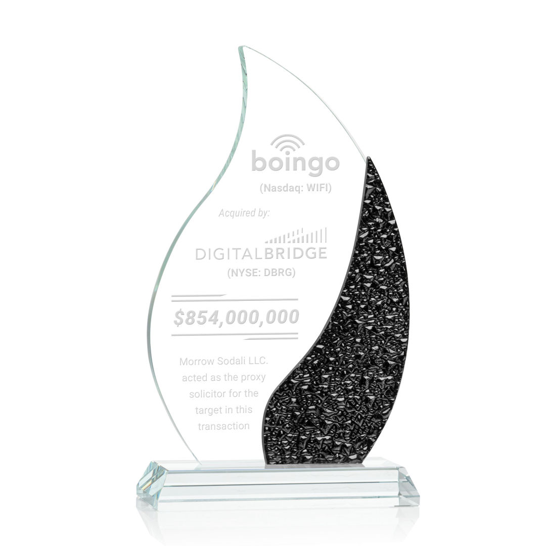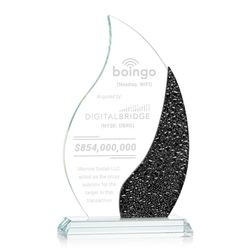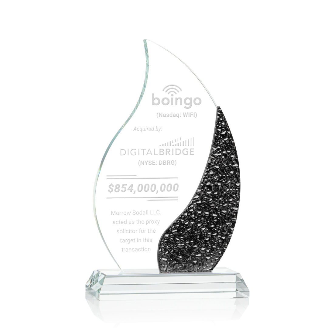 The Oakley Flame Award is a radiant masterpiece that stands out amongst the crowd! The main body of the award takes the form of a dynamic flame, meticulously sculpted from Starfire Crystal. What sets this award apart is the innovative inclusion of a stained glass-like texture at the side of the award that follows the curved flame shape. This intricate detail adds a layer of complexity and artistry to the design, creating a visual symphony of color and pattern. Mounted on a clear tapered Starfire Crystal base, this unique yet versatile award is suitable for recognizing achievements in any industry! Available in various colors.