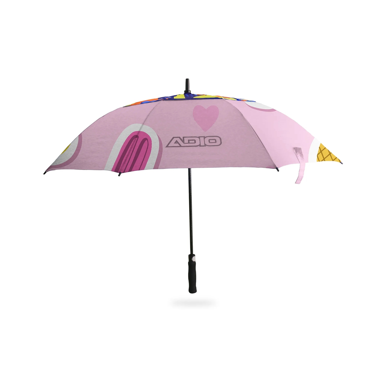 Never get caught in the rain again, with our great new umbrella range! Our Sports Umbrella comes complete with a full surface branding area, your brand will be clear to see. Made of 210T pongee canopy material, with automatic opening. A double canopy design, allows for ventillation on hot days.The double-canopy design creates a vent, through which wind can pass through, making the umbrella much easier to handle in harsh conditions. Forget about your umbrella flipping inside out. Both canopies can be customised with full surface digital print, of the same or different designs. The EVA handle can be upgraded to ABS or wooden material options (Straight or Hook handles are also available), which allows for the additional branding option of an epoxy doming sticker on the bottom of the handle.